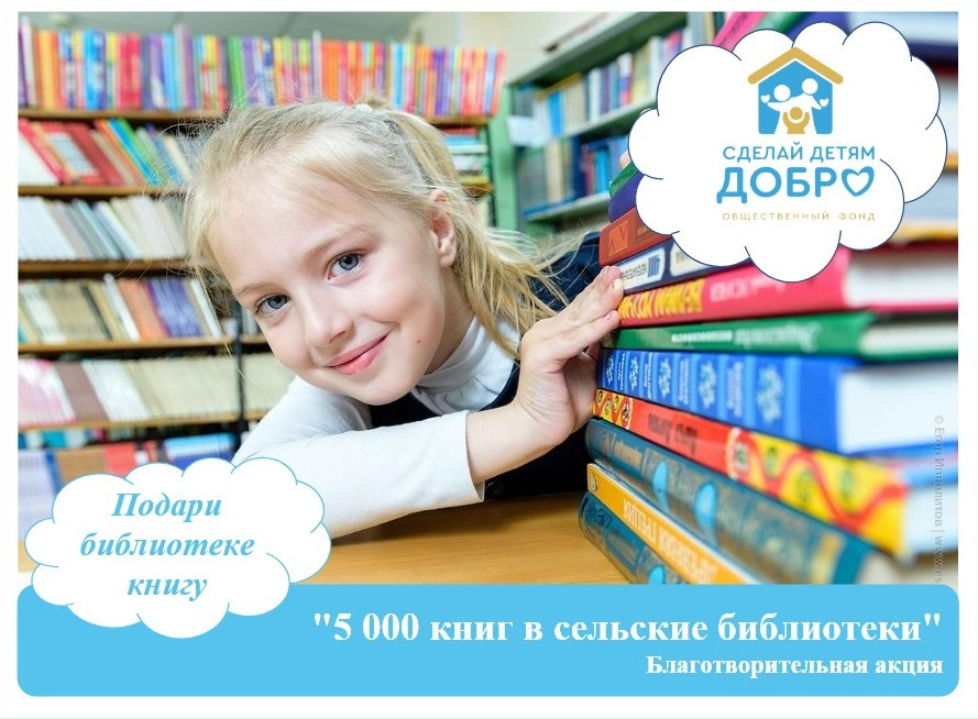 Общественный Фонд "Сделай Детям Добро" в рамках Национального проекта "Образование" начинает сбор средств на покупку 5000 новых книг для детей и подростков. Все книги будут переданы в сельские библиотеки, чтобы вдохновить молодёжь на чтение и развитие.