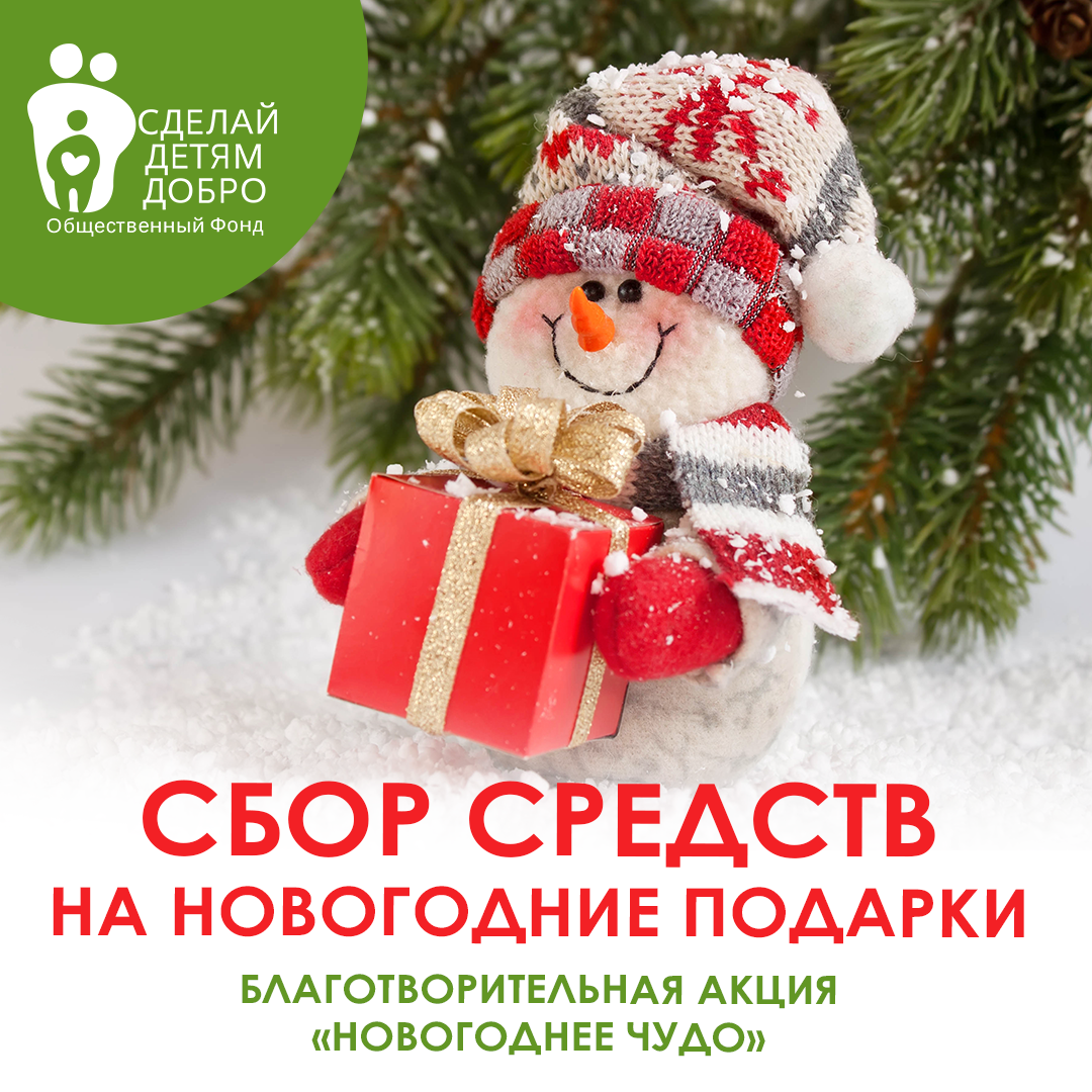Проект «Новогоднее чудо» — ежегодная благотворительная акция Общественного Фонда «Сделай Детям Добро», цель которой — подарить детям радость, тепло и веру в добро. В преддверии праздника мы собираем и передаём сладкие новогодние наборы, игрушки и сюрпризы детям из социально уязвимых семей, детских домов и учреждений.